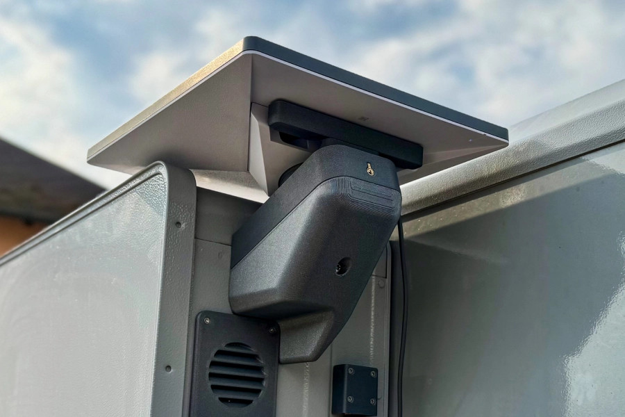 The EcoFlow DELTA 3 Plus charging station offers a capacity of 1,000 Wh, which is enough for 2–3 days of operation even without external charging. It can be expanded with an additional battery with another 1,000 Wh. Charging is possible from the mains via an outdoor connection (up to 1,500 W), from an alternator (500 W), or from a solar panel (100 W). The unit is fully integrated into the superstructure system, but is also easily portable for use outside of it. The powerful 230V converter can handle appliances with a consumption of up to 2.2 kW (peak 3.6 kW) – such as a coffee maker or tools. There are 4 rechargeable ports for mobile devices (including quick charge), a clear display, and a top-notch mobile app for setting, monitoring status, and energy flow.